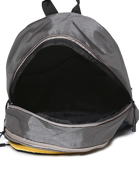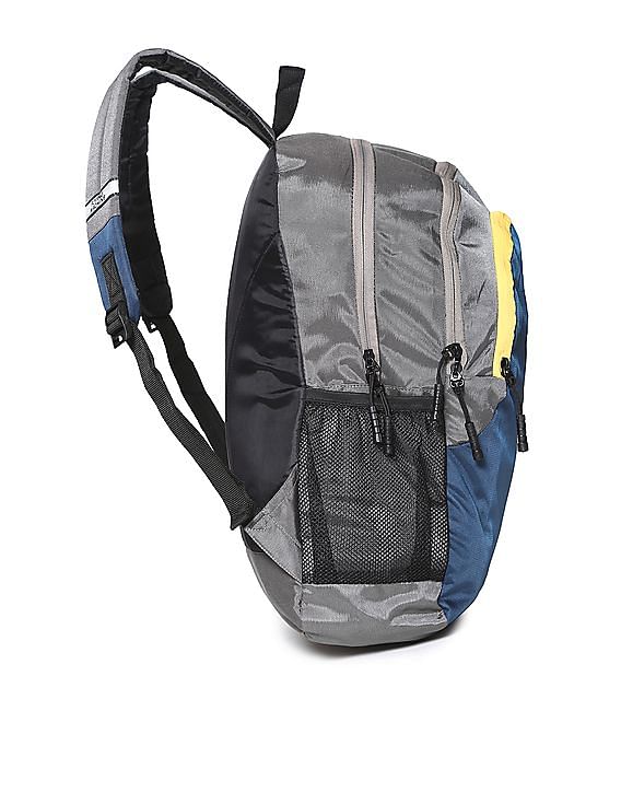 Minimally decorated and incredibly lightweight, Flying Machine's colourblocked and textured backpack is ideal for everything, from weekend excursions to your morning commute. It's made from a sturdy fabric and fitted with an external pocket. The internal sleeve is ideal for safely storing your tablet. The straight-forward design makes it a solid choice for everyday use.