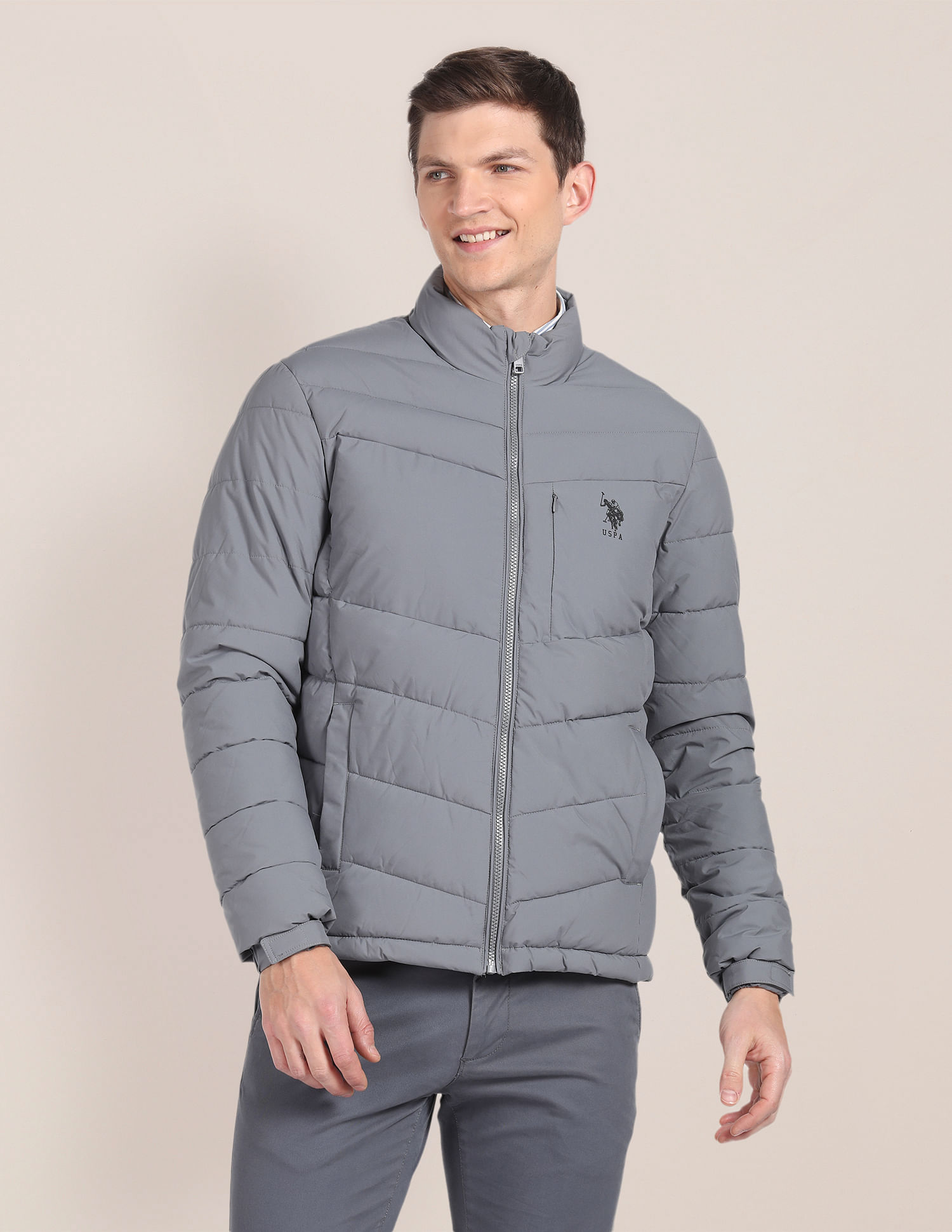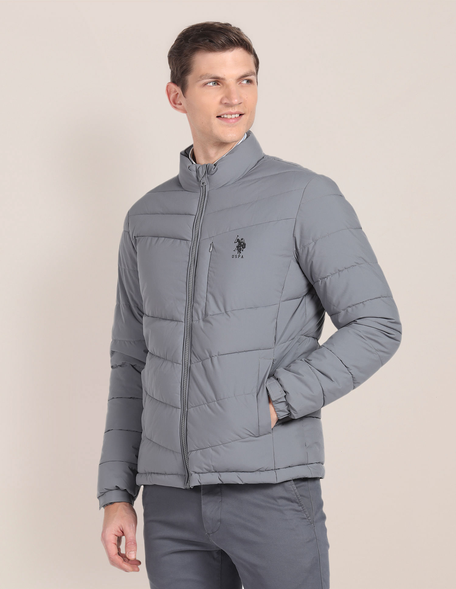U.S. Polo Assn. Choose Options High Neck Solid Quilted Jacket MSRP: $7,499.00 Was: Now: $3,899.00 Give a cool upgrade to your outerwear rotation with this jacket crafted from soft fabric.