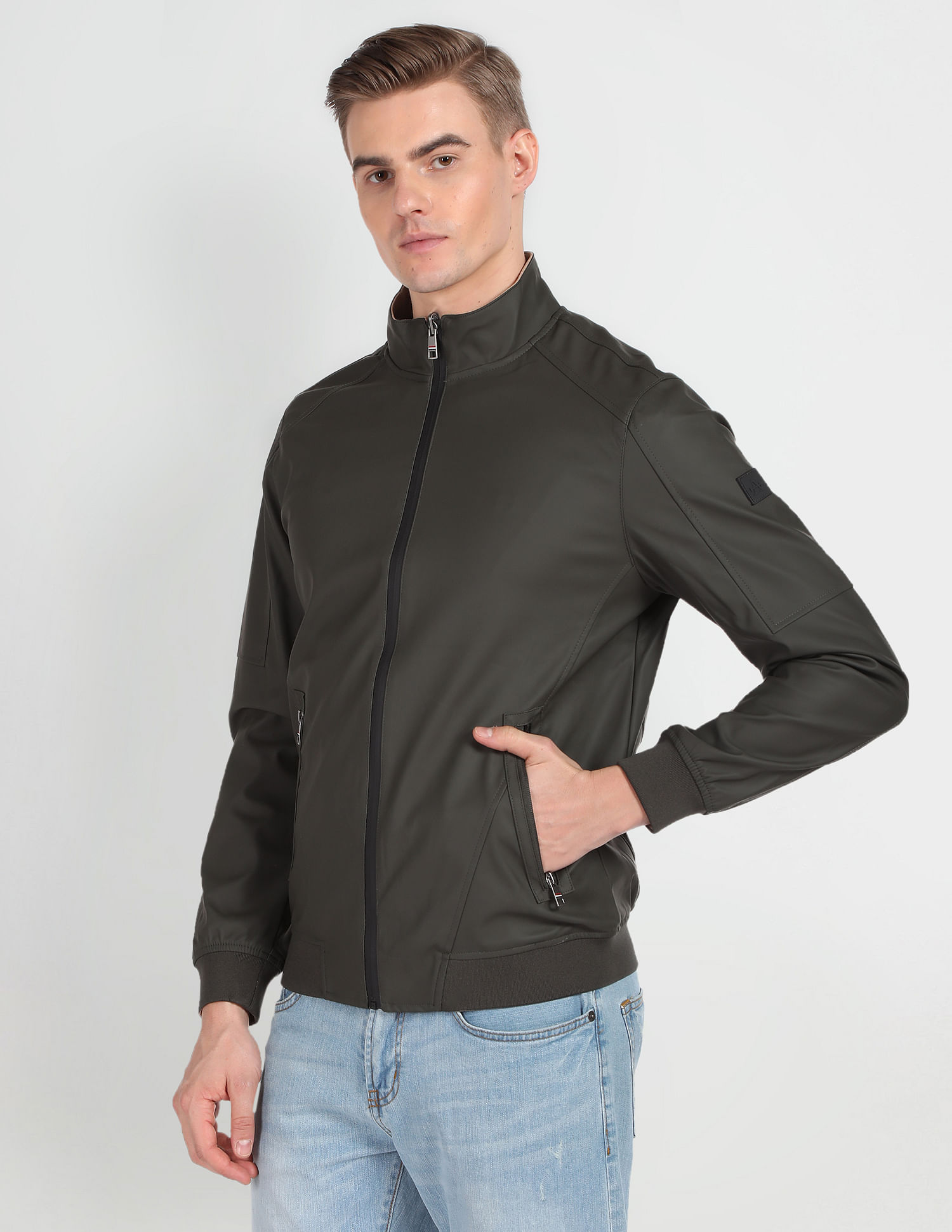 Product Description Your cold-weather collection needs a fresh piece like this featuring a high neck, two waist pockets and a straight hem. Other Details Gender: Men Manufacturer Details: Arvind Lifestyle Brands Ltd. 8th Floor, Duparc Trinity, FM Cariappa Colony, Shivaji Nagar, 17, Mahatma Gandhi Rd, Ashok Nagar, Bengaluru, Karnataka 560001 Article Type: Jackets Returnable: true Tenant Sellable Qty: 10 Composition: 100% Polyurethane Care: Dry Clean Specification: High neck