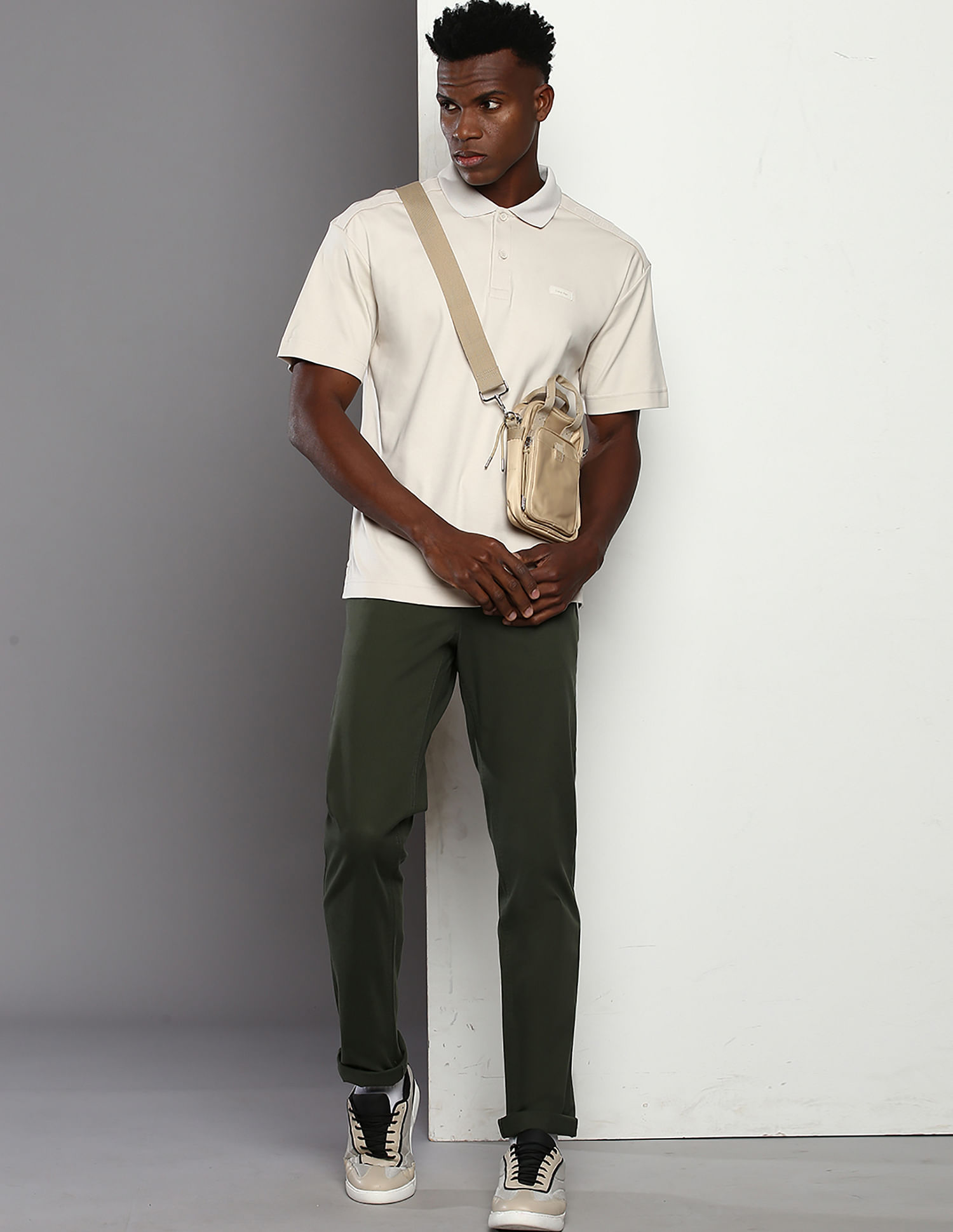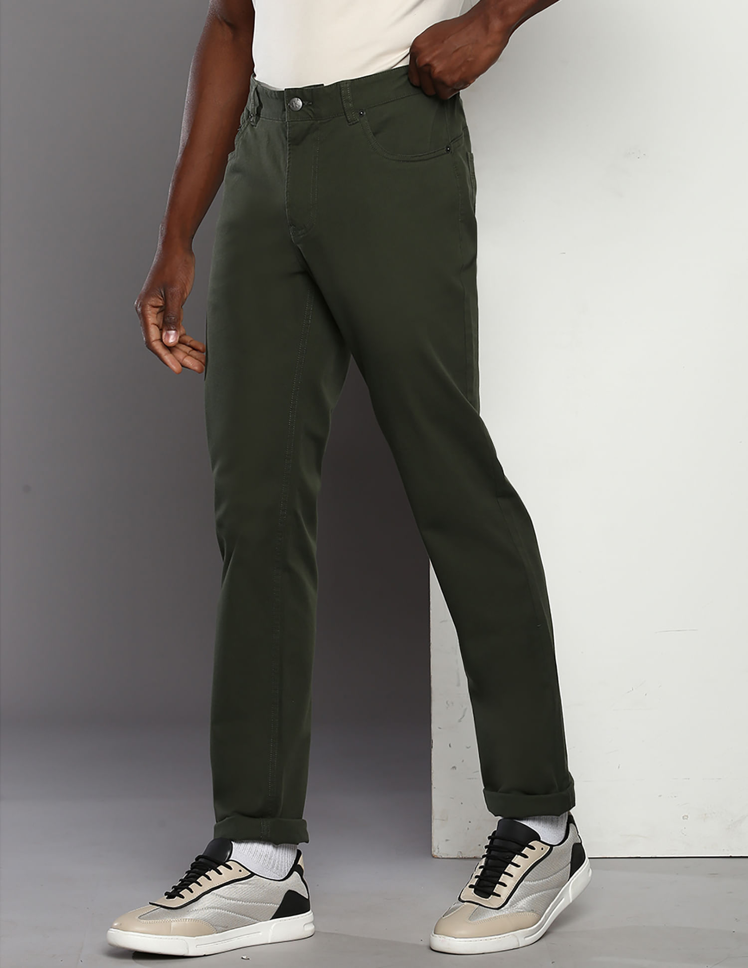 Product Description These solid mid-rise chinos keep flaunting your best look without compromising your comfort. Other Details Gender: Men Manufacturer Details: Imported By PVH Arvind Fashion Pvt Ltd. No.4 Brunton 1St Cross Road, Bangalore-560025, Karnataka. Article Type: Chinos Returnable: true Tenant Sellable Qty: 10 Composition: 53% Cotton 41% Viscose 6% Elastane Care: Machine wash Specification: Mid-rise waist