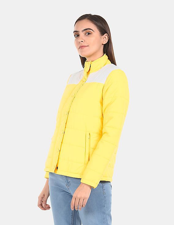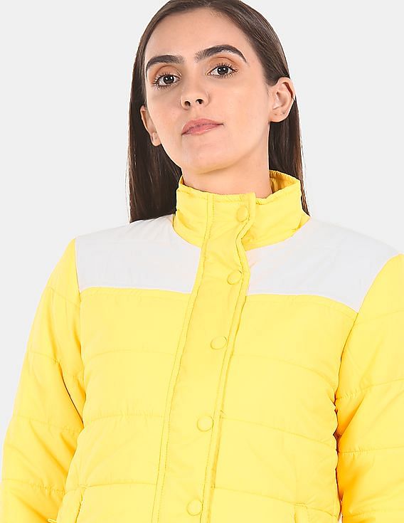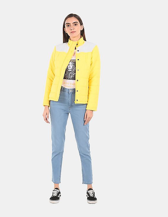 When it comes to layering, you can never go wrong with a jacket. This quilted version from Flying Machine is woven from a breathable fabric and sports a high neckline, mock button closure and long sleeves. Wear yours with everything from graphic tees to sweaters.