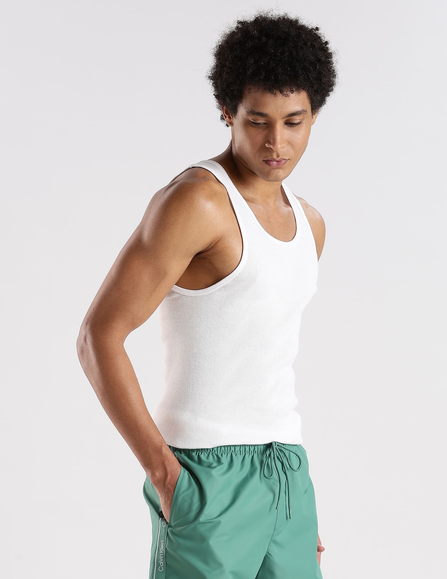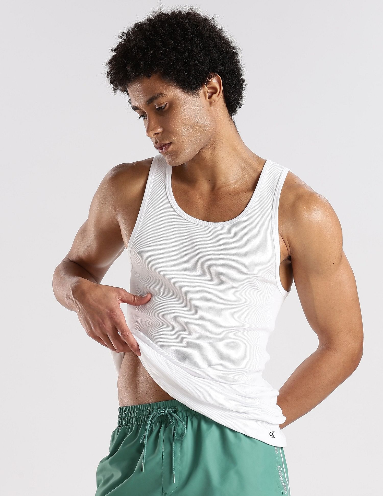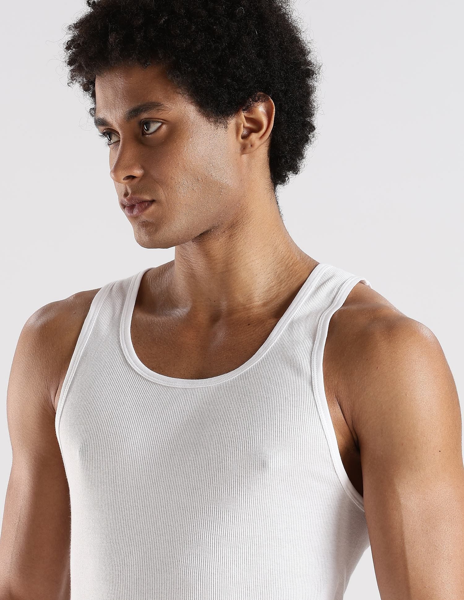 Discover ultimate comfort with this essential men's vest. Crafted from soft, breathable cotton using a knitted construction technique, this white innerwear top is designed to keep you feeling fresh and comfortable all day long. Perfect for casual wear or as a base layer, this solid-patterned vest is a must-have in every man's wardrobe. Its Western-inspired design ensures versatility, making it ideal for various occasions. The sleek, minimalist style of this innerwear basic allows it to seamlessly blend with any outfit. Whether you're lounging at home or layering up for a day out, this vest has got you covered. Everyone needs a reliable vest in their wardrobe – this soft, breathable cotton innerwear top is perfect for everyday comfort and pairs easily with any outfit for a smooth, streamlined look.