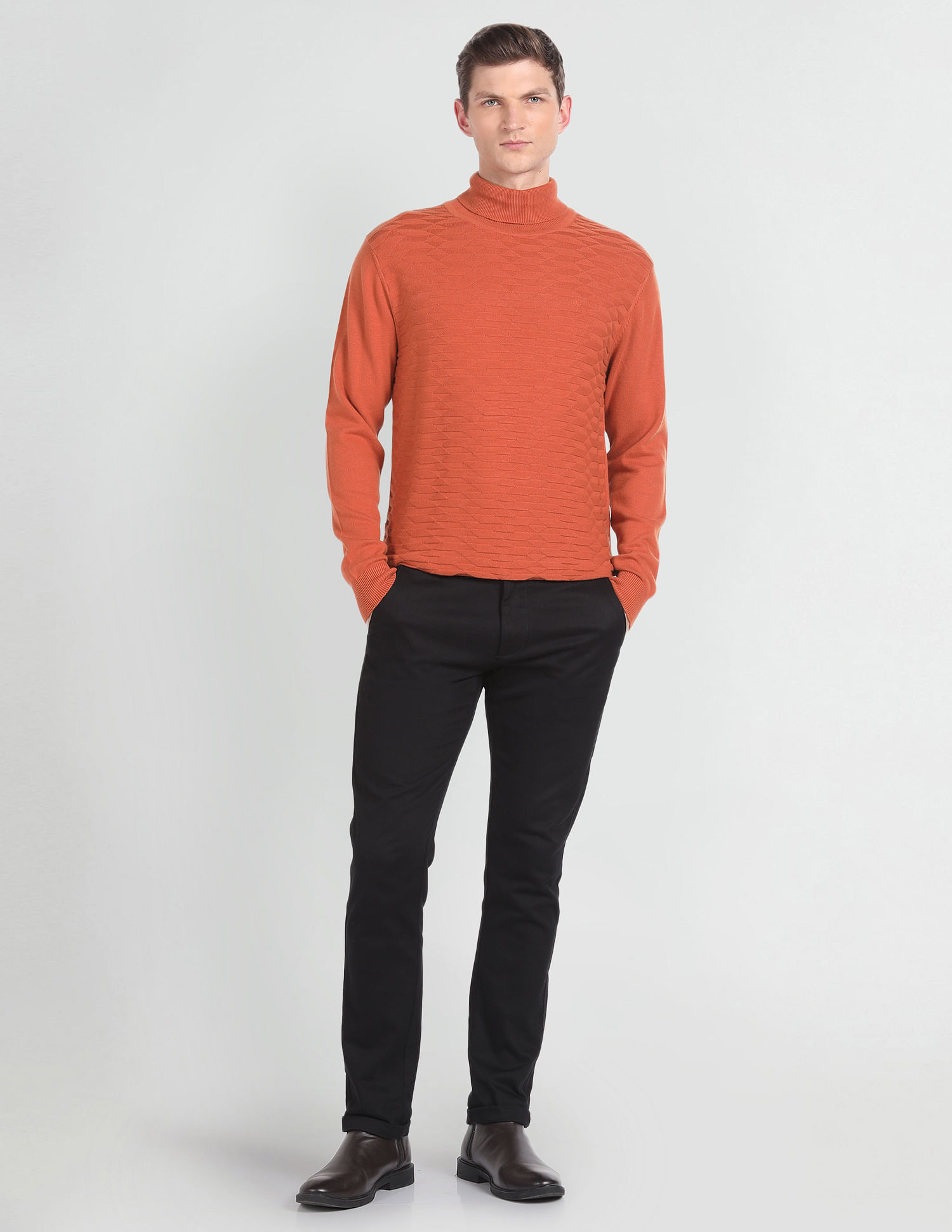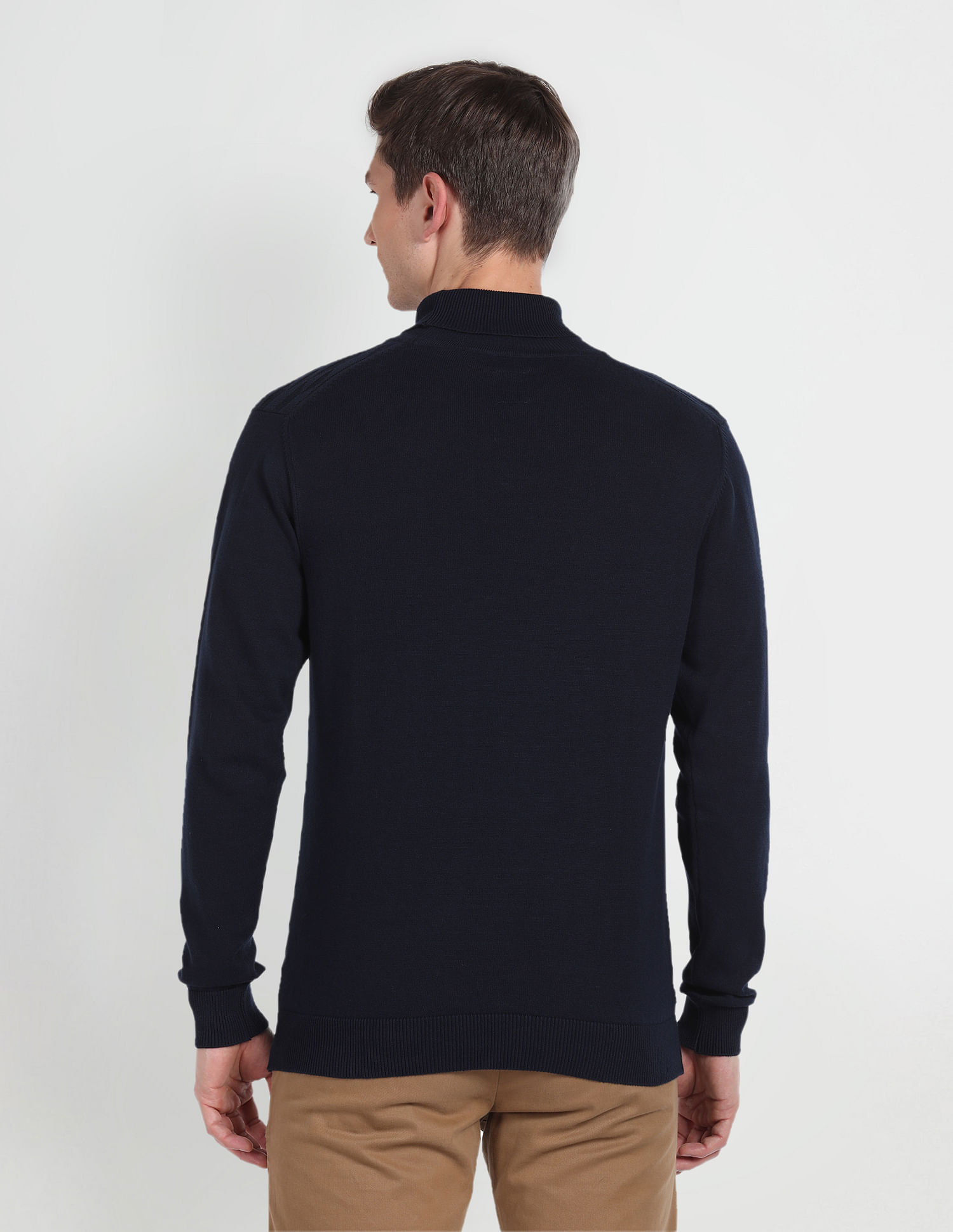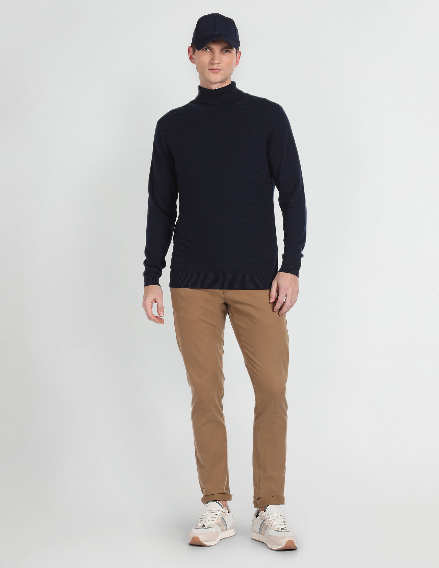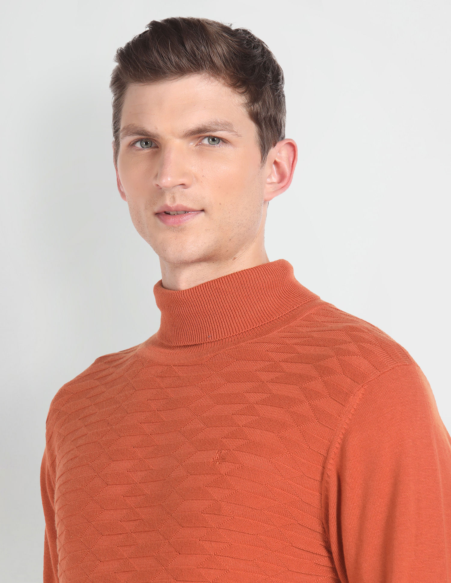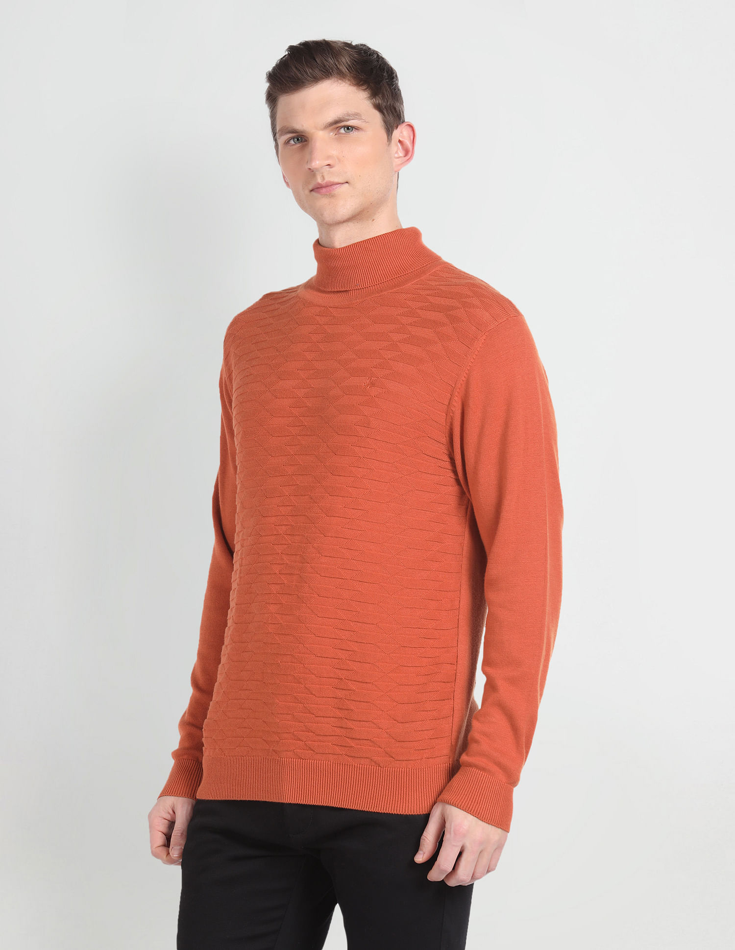 Product Description This turtle neck sweater with patterned knit is crafted with long sleeves and a ribbed straight hem. Other Details Gender: Men Manufacturer Details: Simbus Sourcing Llp, 3Rd Floor, 951, 24Th Main Jp Nagar 2Nd Phase J P Nagar Bangalore South Bangalore , Karnataka , India - 560078 Article Type: Sweaters Returnable: true Tenant Sellable Qty: 10 Base Product ID: a378d31b-eab7-3998-9347-011370f79e70 Composition: Cotton blend Care: Machine wash Specification: Turtle neck